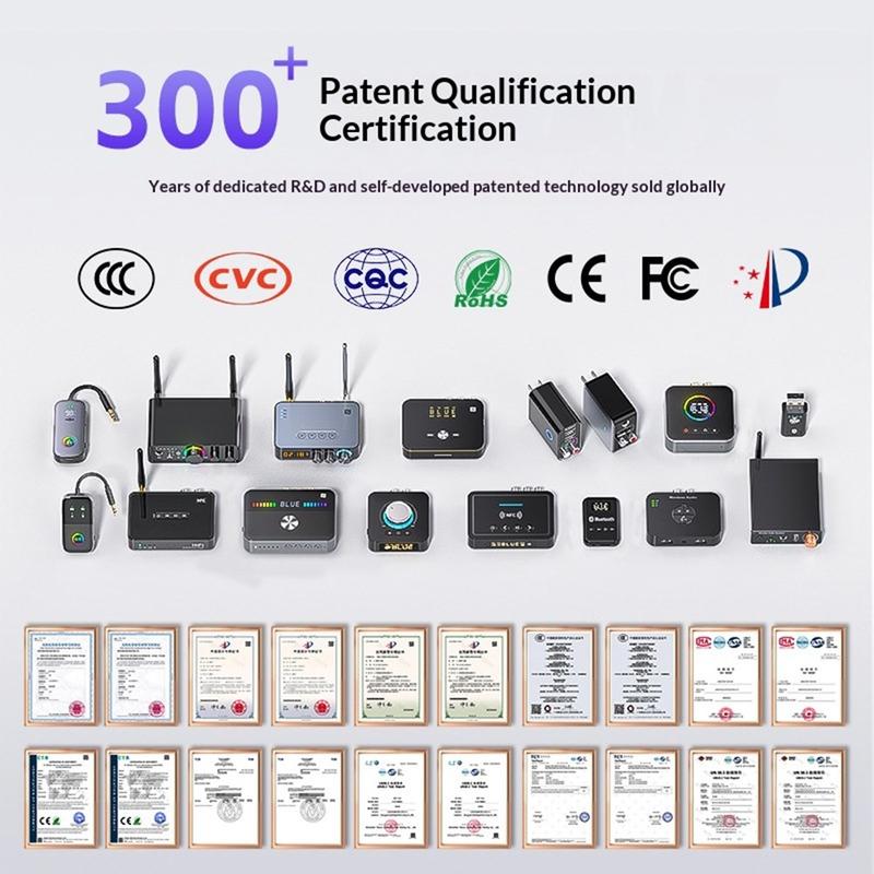 De adapter wordt aangedreven door een geavanceerde Bluetooth 5.2-chip en biedt snelle koppeling, lage latentie en stabiele verbindingen. Hij ondersteunt meerdere audiodecoderingsformaten voor helder, gebalanceerd geluid tijdens het afspelen van muziek en telefoongesprekken.