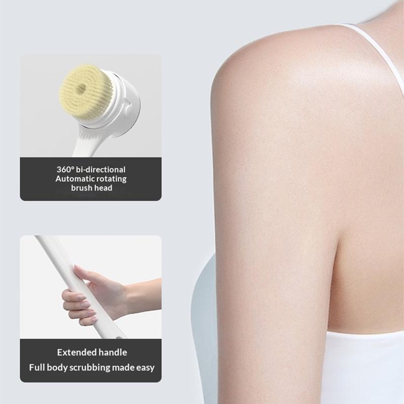Dankzij de verlengde steel kunt u veel gemakkelijker uw rug, benen en andere moeilijk bereikbare plekken bereiken zonder u te overbelasten, waardoor deze borstel ideaal is voor dagelijks gebruik onder de douche. Het 360° in twee richtingen roterende borstelkop-systeem, in combinatie met drie instelbare snelheidsniveaus, geeft u meer controle over uw reinigingsroutine. Of u nu de voorkeur geeft aan een zachte dagelijkse reiniging, intensiever scrubben of een rustgevend massage-effect, deze elektrische badborstel past zich aan verschillende huidverzorgingsbehoeften aan.