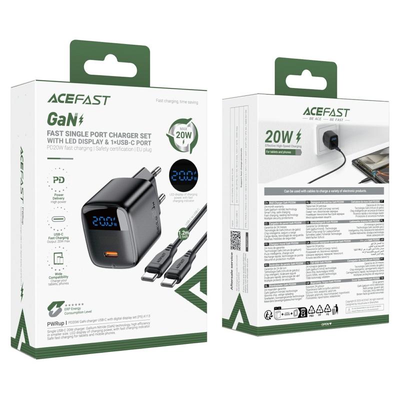 Acefast A113 20W GaN-oplader met USB-C-kabel en LED-vermogensweergave