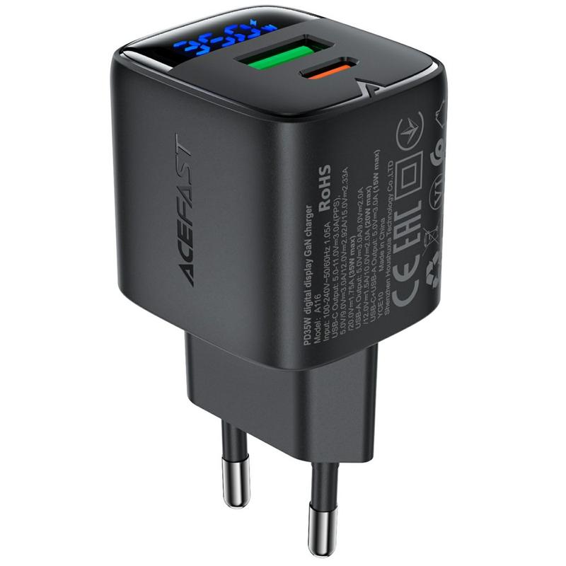 Acefast A116 GaN 35W Dual-Port snellader met LED-vermogensweergave