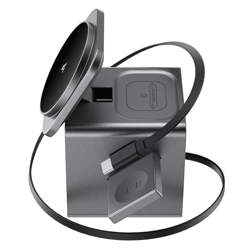 Acefast E34 3-in-1 Magnetisch Draadloos Oplaadstation met Elektrische Flip voor Smartphone, Smartwatch & Oordopjes - 15W, 5W, 2,5W