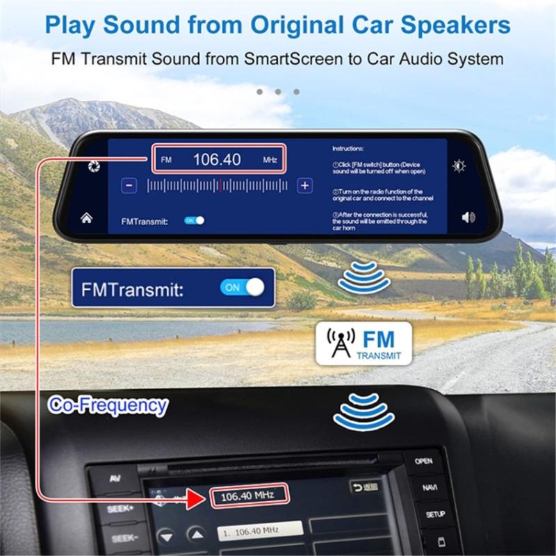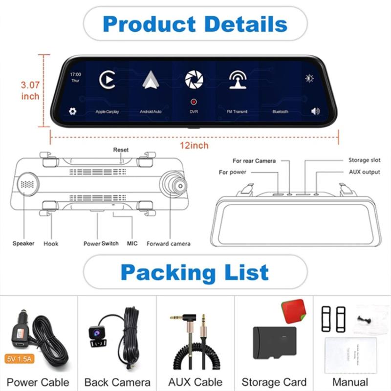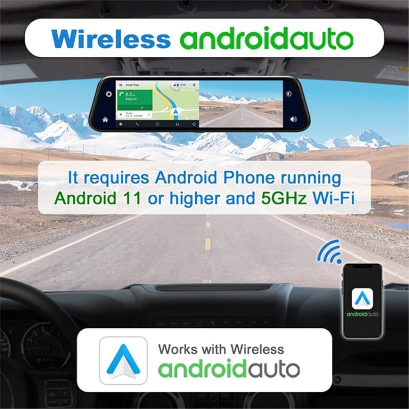 Touch Screen Achteruitkijkspiegel Dual Dash Cam met GPS Navigatie, Android Auto, CarPlay, Bluetooth, Mirror Link - 9"
