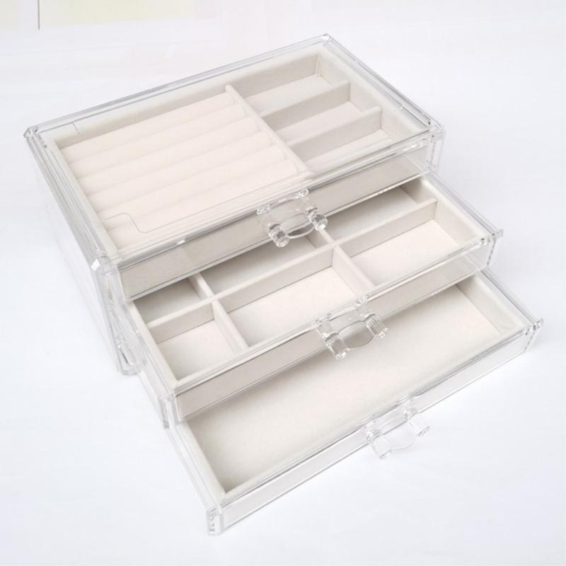 - Het doorzichtige acryldeksel maakt het gemakkelijk om uw sieraden te zien en snel te selecteren zonder de doos te openen