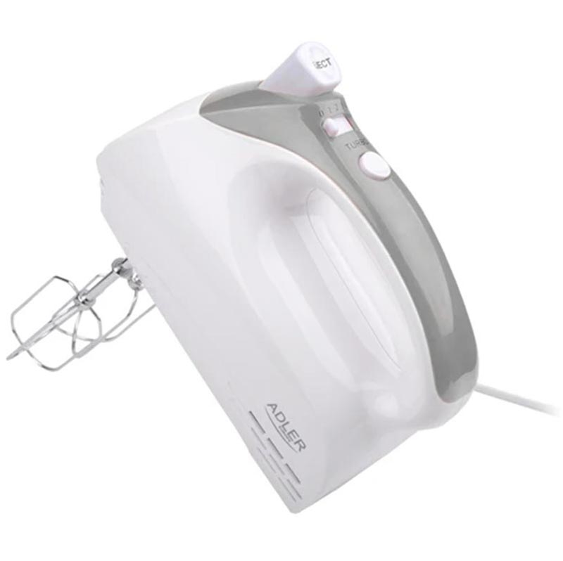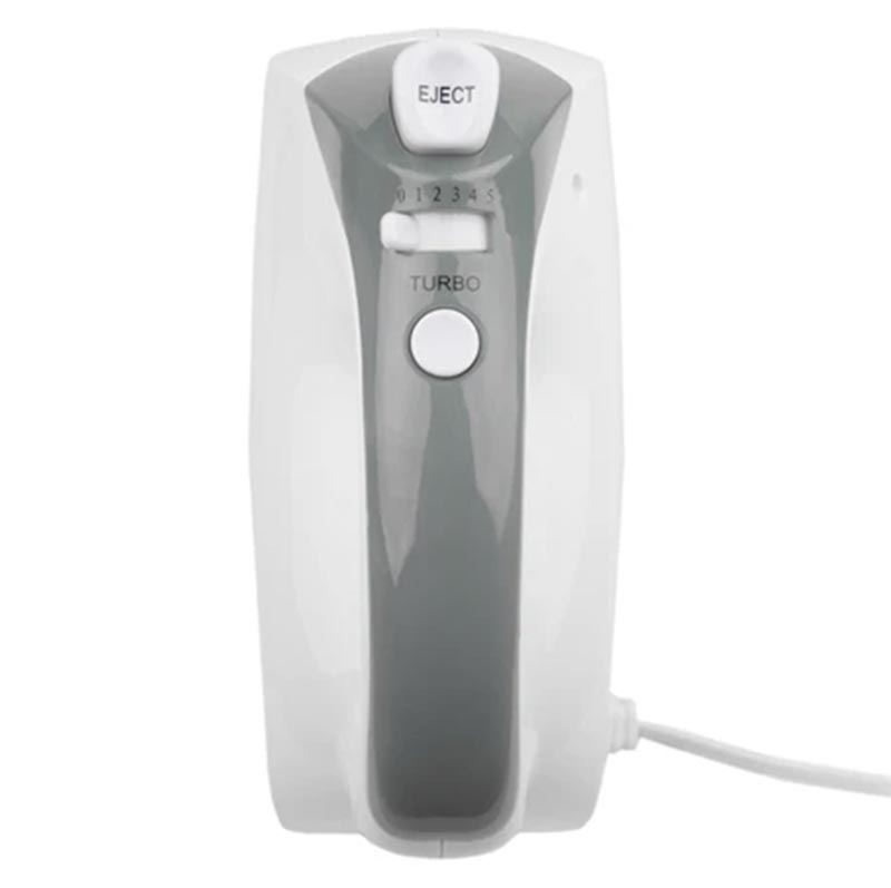 Een zeer handige mixer van 300 watt die onmisbaar is voor iedereen die taarten en koekjes bakt. Je kunt hem op 5 verschillende snelheden gebruiken, afhankelijk van het soort voedsel dat je bereidt. Daardoor kan hij zowel gebruikt worden om bloem met andere ingrediënten te mengen als om eiwitten op te kloppen. Als het nodig is, kun je de TURBO-functie gebruiken. De mixer is zeer praktisch en betrouwbaar en kan voor langere tijd worden gebruikt zonder het risico dat hij stuk gaat.