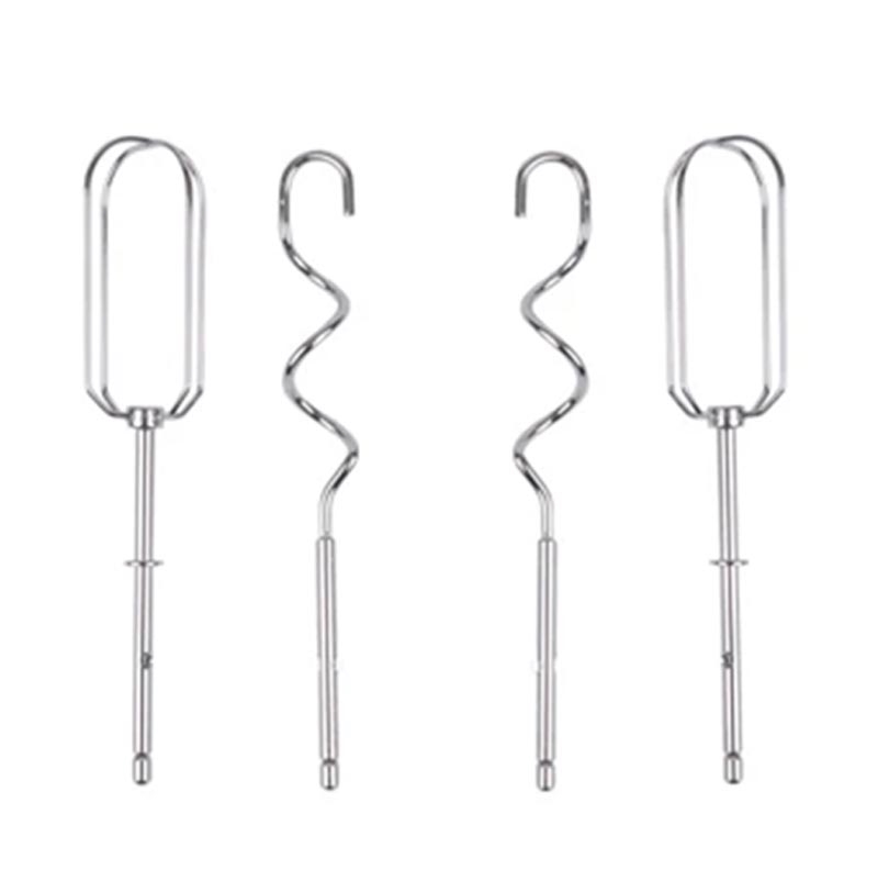 - Twee kloppers en twee deeghaken van roestvrij staal