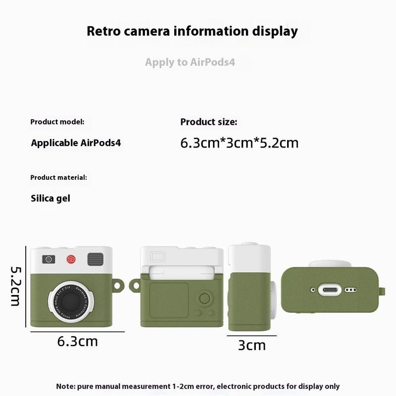 Dit hoesje is een perfecte mix van stijl en functionaliteit. Het biedt eersteklas bescherming voor je AirPods 4, met het extra gemak van ondersteuning voor draadloos opladen en een draagbare karabijnhaak. Het retro camera-ontwerp geeft het een opvallende, nostalgische look.