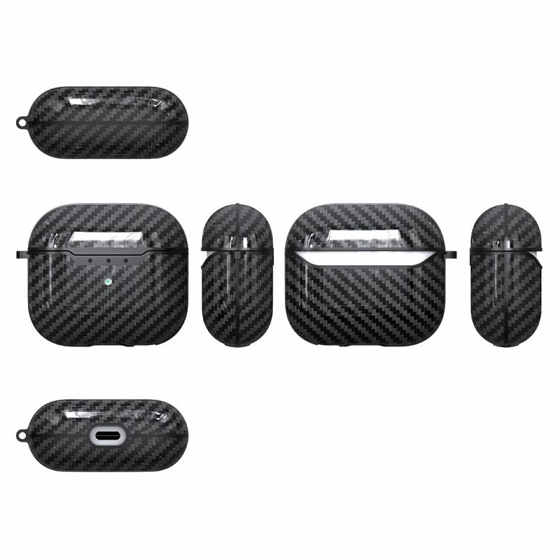 Het schokabsorberende materiaal met een koolstofvezel textuur biedt essentiële bescherming tegen vallen en stoten voor je hoofdtelefoon en geeft hem tegelijkertijd een coole nieuwe look. Daarbovenop wordt deze hoes voor AirPods 4 geleverd met een praktische karabijnhaak voor veiliger dragen.
