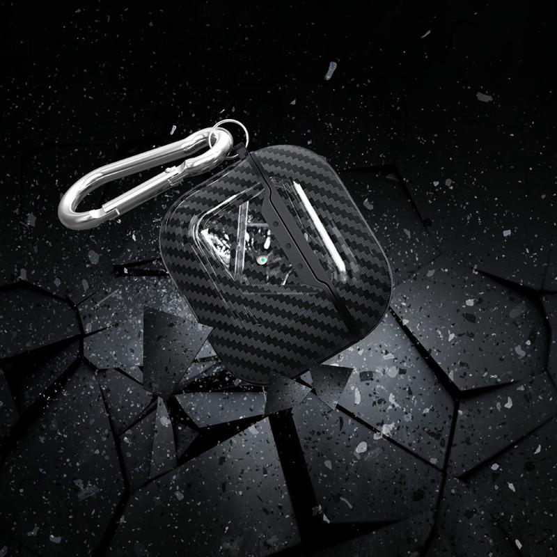 TPU Hoesje met Karabijnhaak voor AirPods 4 - Koolstofvezel