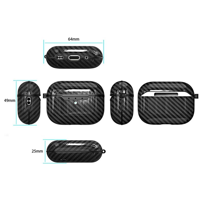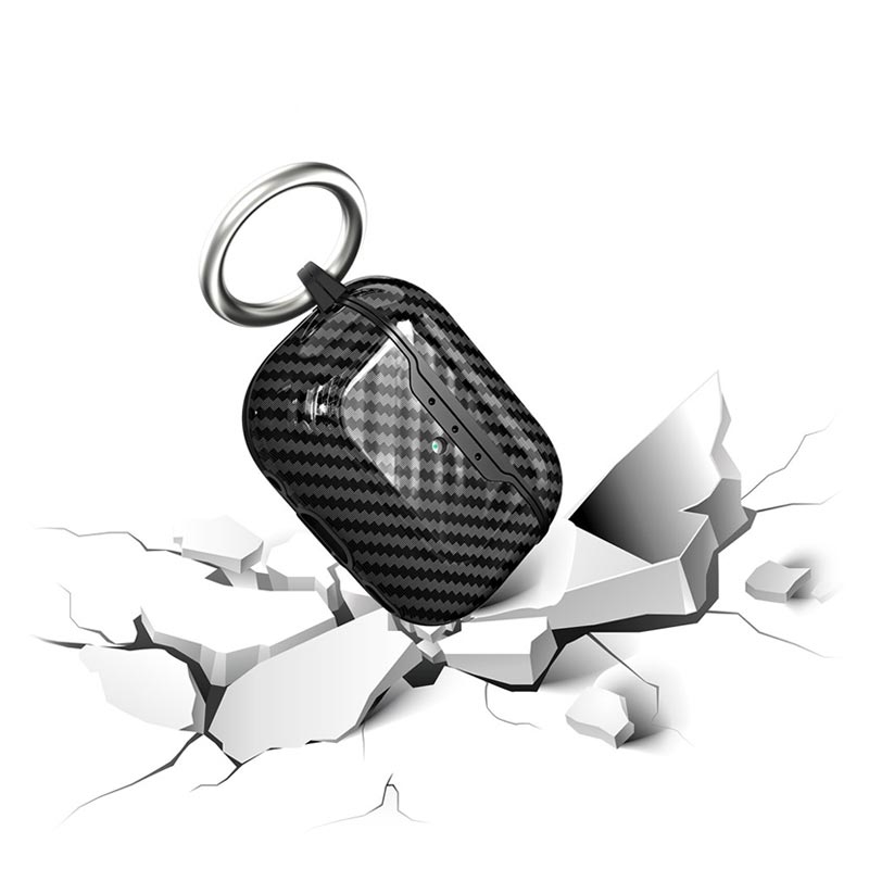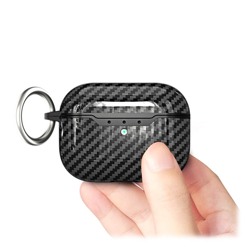 TPU Hoesje met Karabijnhaak voor AirPods Pro 2 - Koolstofvezel