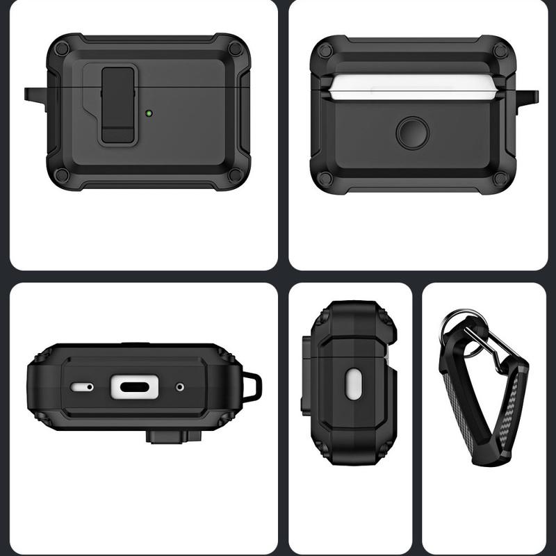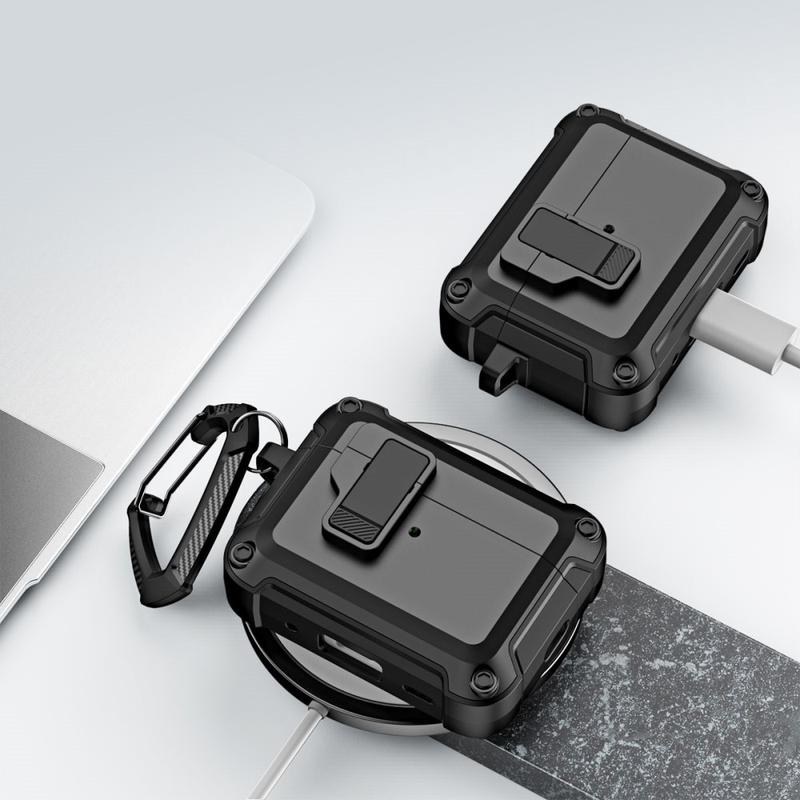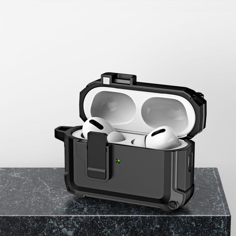 AirPods Pro (Gen 2) (USB-C) / Pro 2 Schokbestendige TPU+PC behuizing Bluetooth oordopjes Oplaadhoes met gesp - Zwart