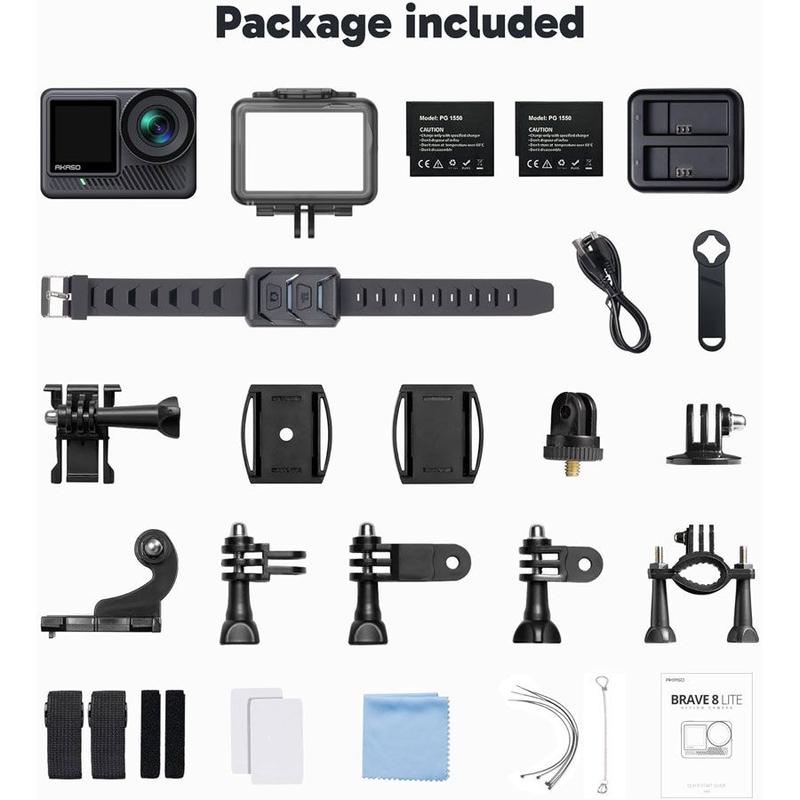Akaso Brave 8 Lite Waterdichte Actiecamera met 2x 1550mAh Batterij - 4K/60FPS Ultra HD