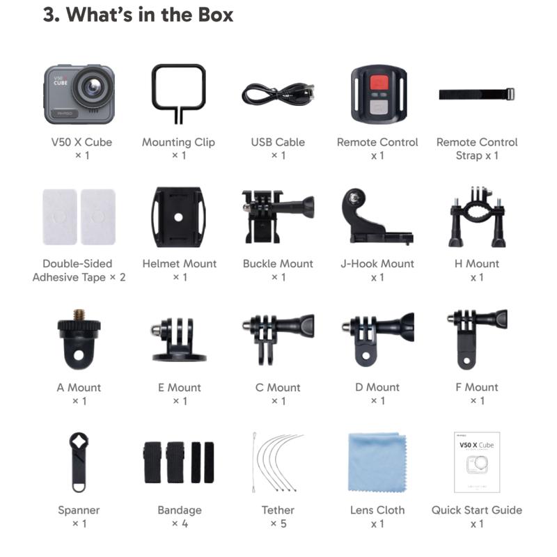 Akaso V50 X Cube Actiecamera 20MP met meerdere accessoires - Leg je avonturen vast in verbluffend 4K Ultra HD