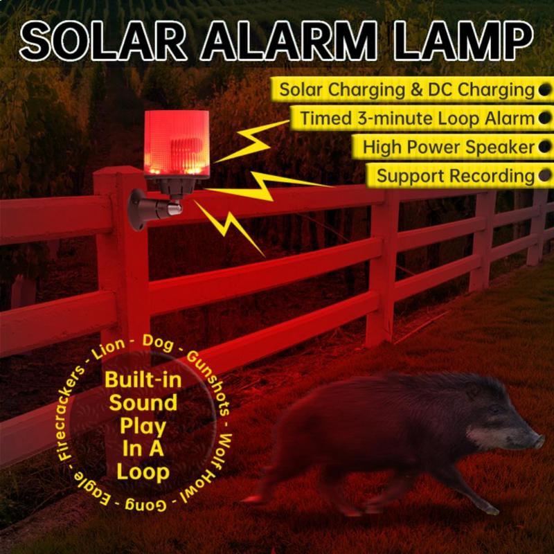 Houd tuinen, boomgaarden en bouwterreinen 24 uur per dag veilig. De N911L combineert een oorverdovende 129dB sirene, acht knipperende rode LED's en een selecteerbare bibliotheek met waarschuwingsgeluiden, waaronder hondengeblaf, wolvengehuil en rotjes om zowel dieven als wilde dieren af te schrikken. Een monokristallijn zonnepaneel laadt overdag de 1 200 mAh batterij op, terwijl slimme elektronica elke drie minuten na zonsondergang een 20 seconden durende uitbarsting van geluid en licht activeert. Iets persoonlijks nodig? Neem je eigen bericht van 20 seconden op met één druk op de knop. Geen bedrading op het lichtnet, minimale gebruikskosten - alleen betrouwbare, weerbestendige bescherming waar je het ook nodig hebt.