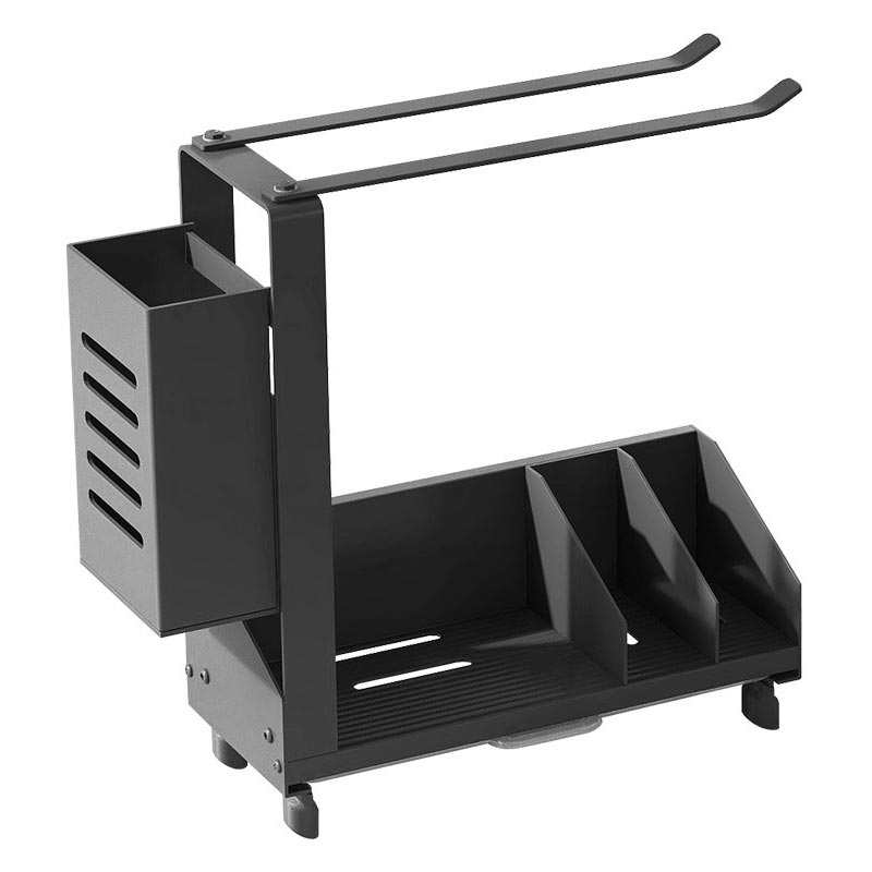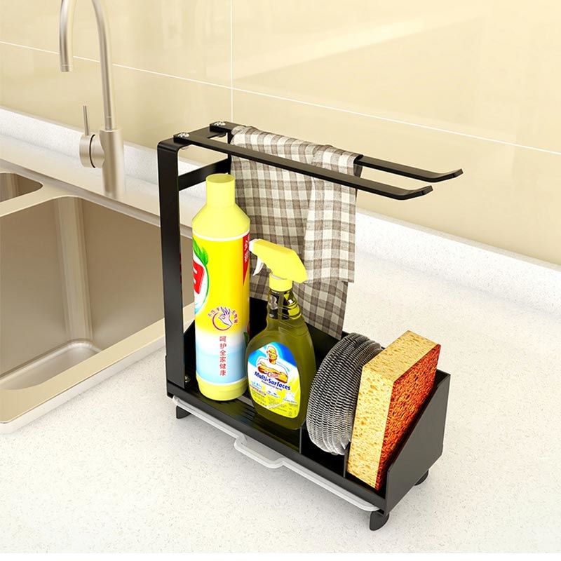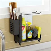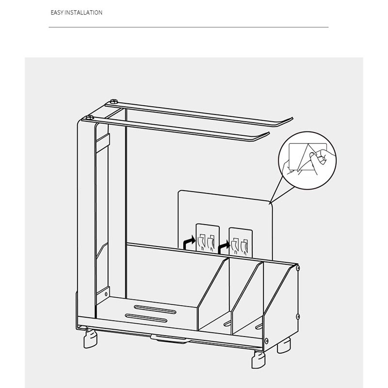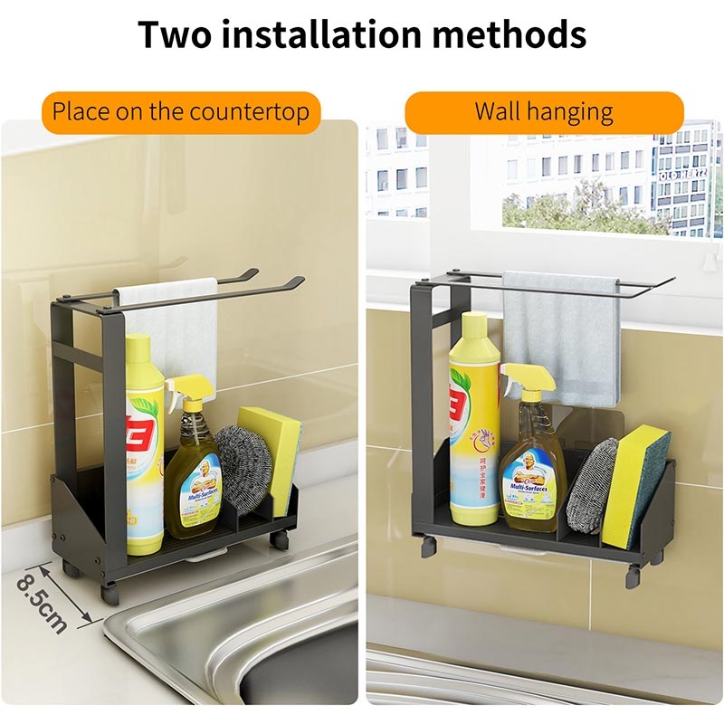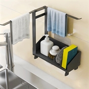 De organizer is gemaakt van duurzaam aluminium en koolstofstaal en biedt langdurige stabiliteit en weerstand tegen dagelijks gebruik. Hij hoeft niet geïnstalleerd te worden - plaats hem gewoon op het aanrecht of hang hem op als dat nodig is. De compacte structuur past op de meeste gootsteenoppervlakken, waardoor het een ideale upgrade is voor keukens, spoelbakken en compacte woonruimtes.