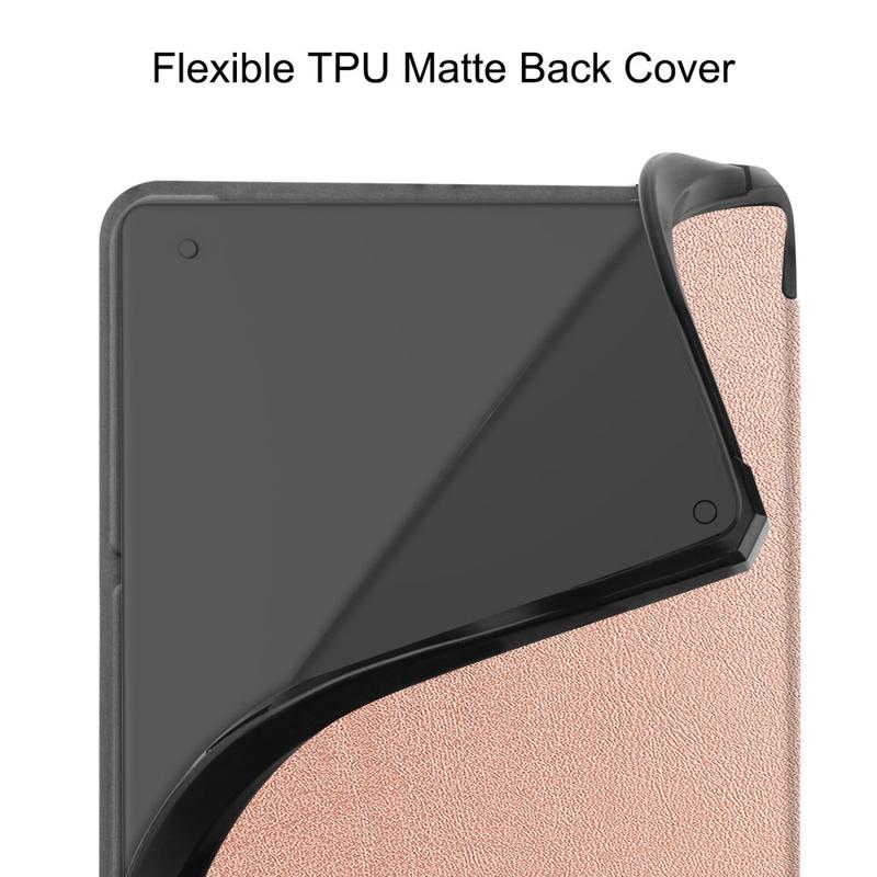 This case is made of high-quality polyurethane and TPU materials, with a simple and fashionable appearance. It is made to protect your Amazon Kindle Scribe and has an origami stand that provides multiple viewing and typing angles for you. Thanks to the intelligent wake-up/sleep function, this folio case automatically turns the screen on or off when opening or closing the flip.