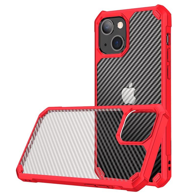 Anti-Shock iPhone 14 Pro Hybrid Case - Carbon Fiber - Rood