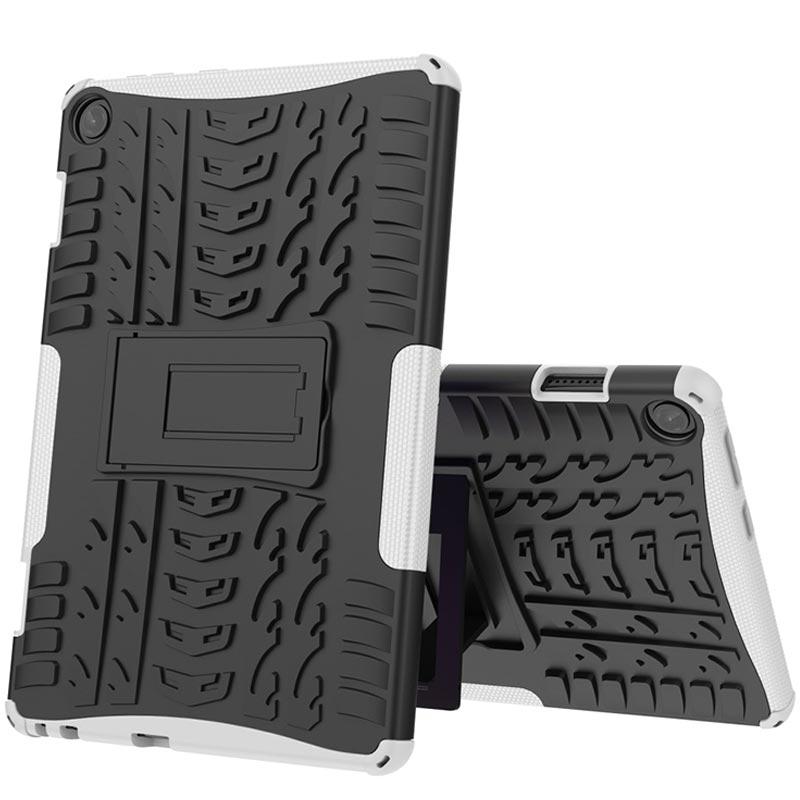Stijlvolle antislip hybride case met standaardfunctie voor Lenovo Tab M10 Gen 3. Het antislip ontwerp voorkomt dat je Lenovo Tab M10 Gen 3 van je handen valt en er zijn gepantserde hoeken om je Lenovo Tab M10 Gen 3 te beschermen tegen beschadiging als deze valt. Gemaakt van plastic en TPU-materialen, de behuizing is solide en duurzaam.