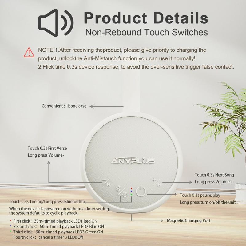 AnyPlus draagbare witte ruis machine voor baby slaap / slaap hulp geluidsmachine met Bluetooth luidspreker