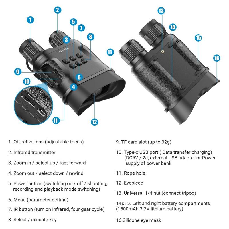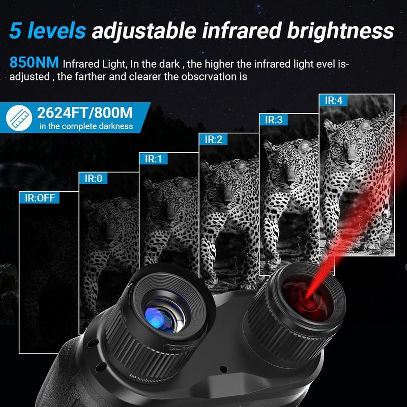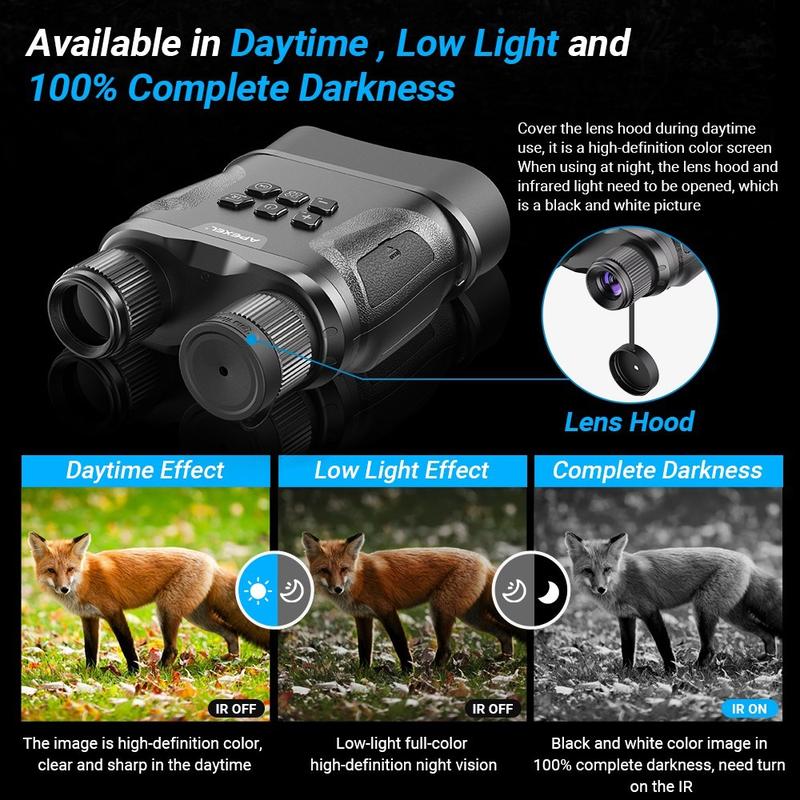 De APEXEL APL-NV008 Night Vision verrekijker is een krachtige dag-en-nacht observatie-instrument ontworpen voor de jacht, wildlife monitoring, nacht avontuur en beveiligingstoepassingen. Met 4X optische zoom, 3X digitale zoom en een lenssysteem met meerdere lagen coating levert dit apparaat heldere, scherpe beelden, zelfs in totale duisternis. De instelbare 850 nm infraroodverlichting biedt 5 helderheidsniveaus, zodat je 's nachts doelen tot op 800 m afstand kunt observeren. Het ergonomische ontwerp zorgt voor een comfortabele bediening, terwijl de ingebouwde camera foto's en video's rechtstreeks opneemt op een TF-kaart voor eenvoudig afspelen en opslaan. Of je nu de natuur verkent of werkt in omgevingen met weinig licht, de APL-NV008 is gemaakt om betrouwbaar en efficiënt te presteren.