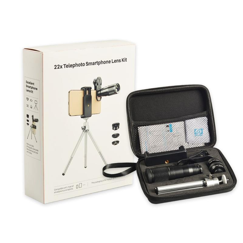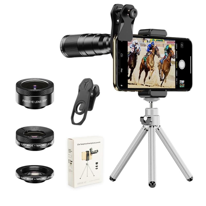APEXEL Telefoon Camera Lens Kit, 22X Telelens + 120° Groothoeklens + 25X Macro Lens + 205° Fish Eye Lens