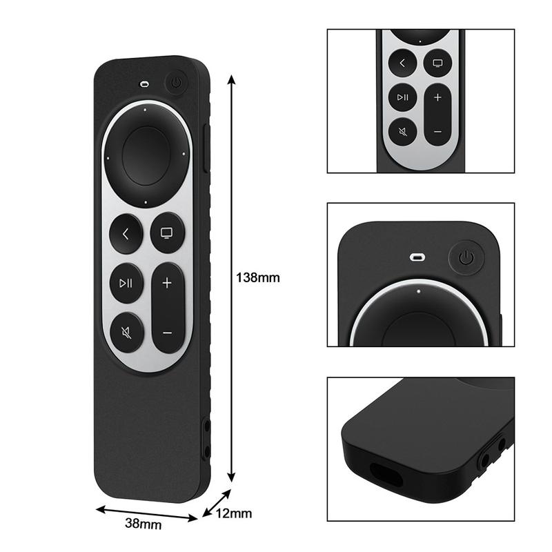 Apple TV 4K Siri-afstandsbediening (3e generatie) Beschermende siliconen hoes met sleutelkoord - Zwart