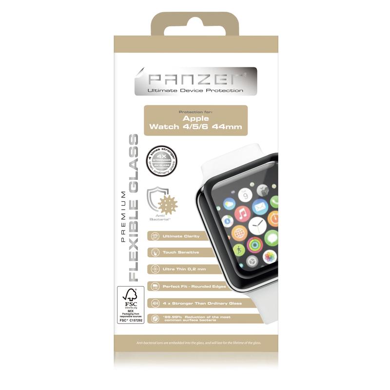 Houd je Apple Watch Series SE 3/SE (2022)/SE/6/5/4 krasvrij met de Panzer Flexible Glass screenprotector.