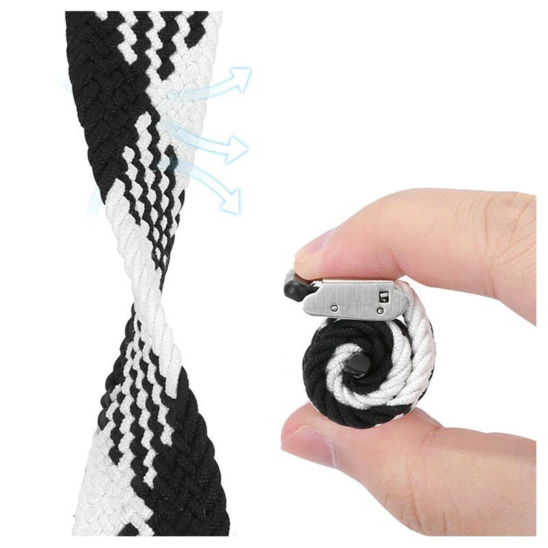 Personaliseer je Apple Watch Series Ultra 3/2/Ultra/11/10/9/8/SE 3/(2022)/7/SE/6/5/4/3/2/1 met deze gevlochten kleurrijke stoffen band. De band is verstelbaar met een klem die perfect past bij verschillende polsbreedtes. De vezels zijn zweetbestendig.