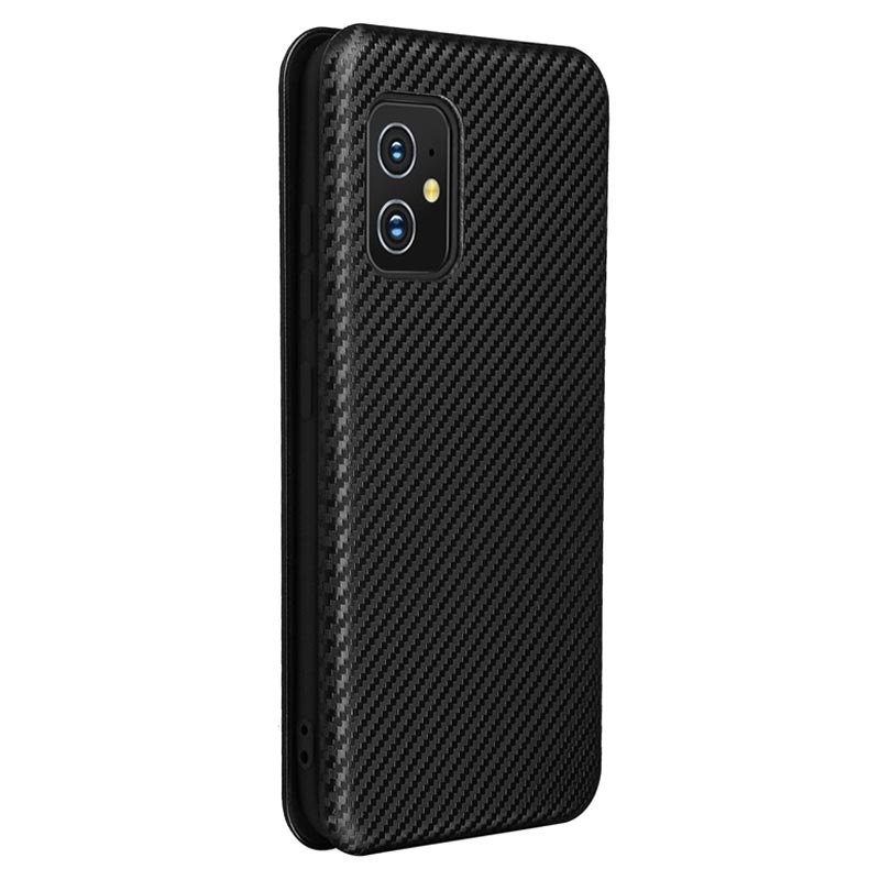 Bewaar je Asus Zenfone 8 veilig in deze flipcase met koolstofvezeltextuur.