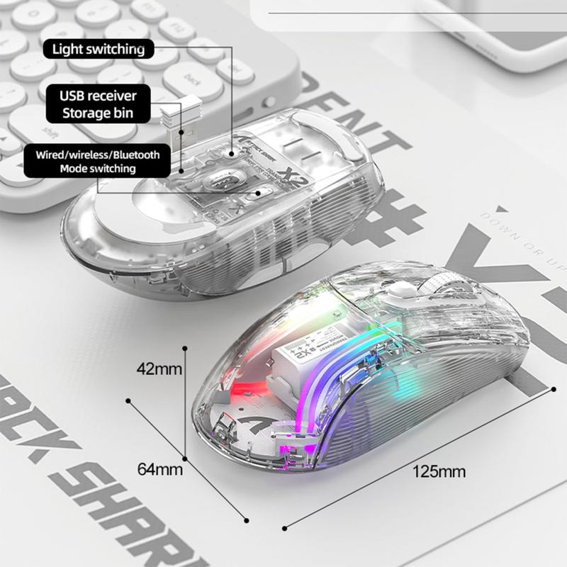 Attack Shark X2 Transparante Draadloze Muis met RGB en 5 DPI-standen