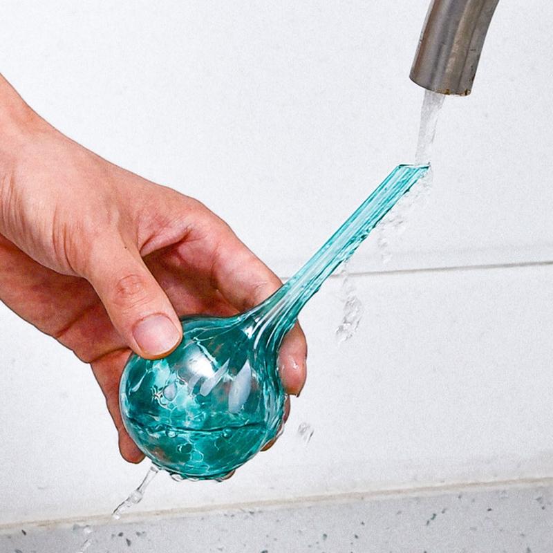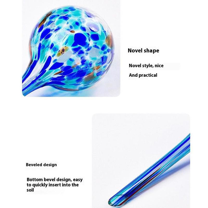 Elke gieter is handgemaakt van glas en combineert praktische plantenverzorging met elegante decoratie. De kleurrijke afwerking voegt een levendig accent toe aan bloempotten, plantenbakken en tuincontainers en past op natuurlijke wijze in elk huis of buitenomgeving.