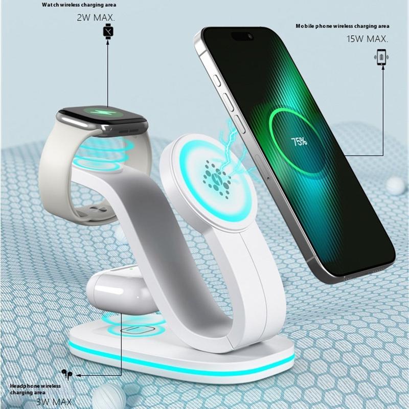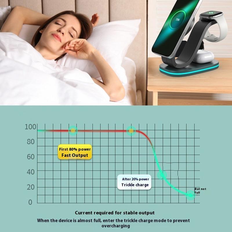 B-28 3-in-1 draadloze oplader met nachtlampje - voorzie je telefoon, horloge en oordopjes van stroom op één plek