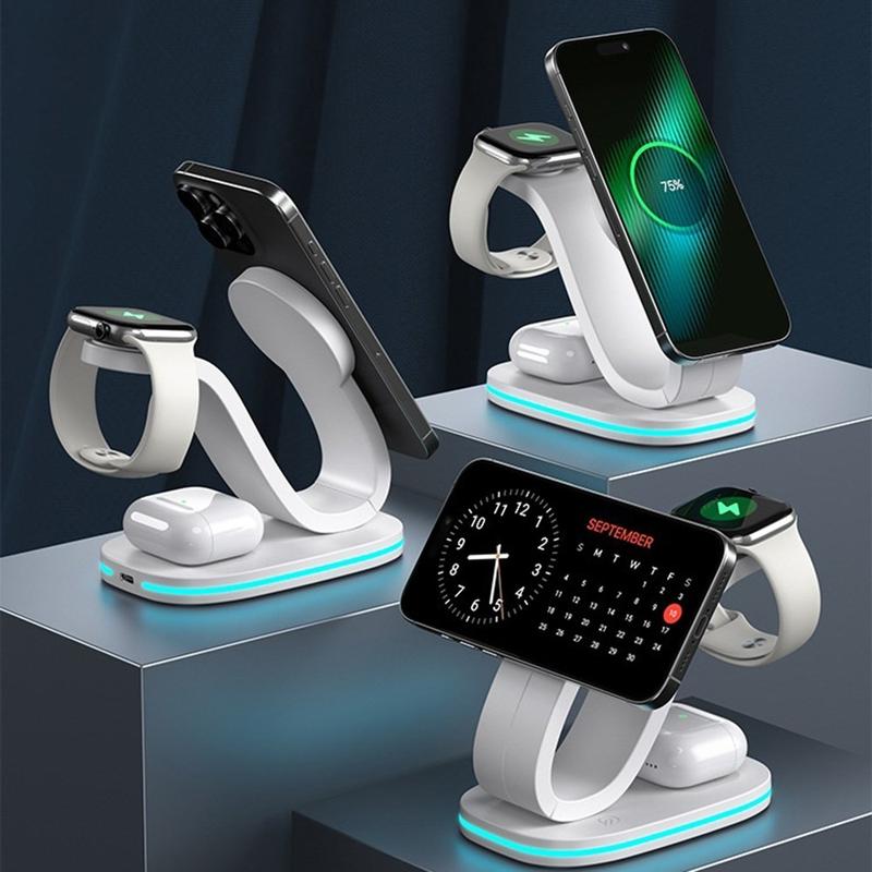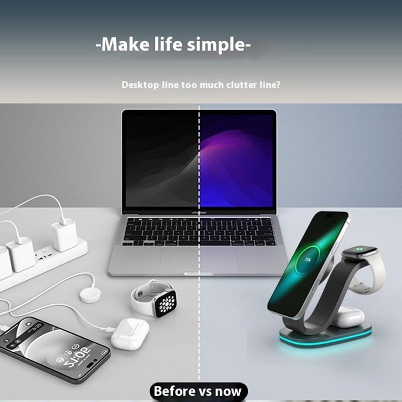 Vermijd rommel op je bureau met één standaard die snel 15 W draadloos opladen levert, je smartwatch oplaadt met 2 W, je oordopjes voedt met 3 W en ook dienst doet als een zacht nachtlampje.