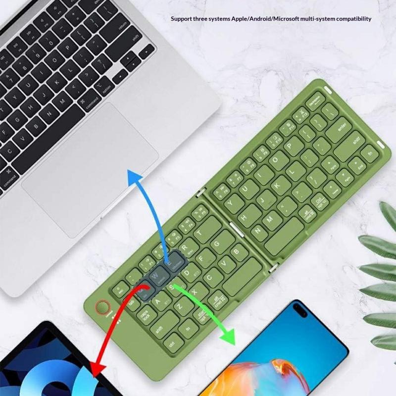 Het B023 68-toetsen magnetisch opvouwbaar draadloos toetsenbord is ontworpen voor mensen die onderweg werken en typen. Dankzij het slimme magnetische dubbel opvouwbare ontwerp kan het toetsenbord worden opgevouwen tot een ultradun, compact formaat dat gemakkelijk in een tas of zelfs een grote zak past. Met brede Bluetooth-compatibiliteit voor telefoons, tablets en laptops verandert het elke plek binnen enkele seconden in een productieve werkplek.