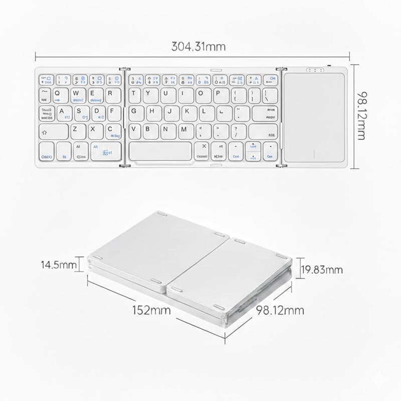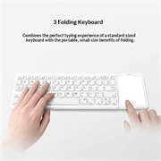 Werk overal comfortabel met het B089 opvouwbare draadloze toetsenbord met touchpad. Het slanke, driemaal opvouwbare ontwerp past gemakkelijk in een laptoptas, terwijl het ingebouwde touchpad soepele navigatie mogelijk maakt zonder aparte muis. Het is ontworpen voor telefoons, tablets en laptops en is ideaal voor reizen, werken op afstand en dagelijkse productiviteit.
