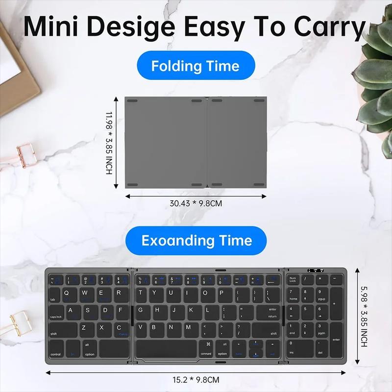 B089 Draagbaar, in drieën opvouwbaar Bluetooth-toetsenbord met numeriek toetsenblok - Draadloos toetsenbord met 81 toetsen voor thuis, op kantoor, op de tablet en op de telefoon