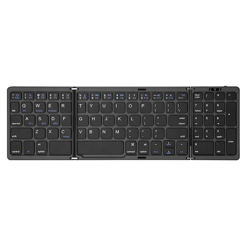 B089 Draagbaar, in drieën opvouwbaar Bluetooth-toetsenbord met numeriek toetsenblok - Draadloos toetsenbord met 81 toetsen voor thuis, op kantoor, op de tablet en op de telefoon