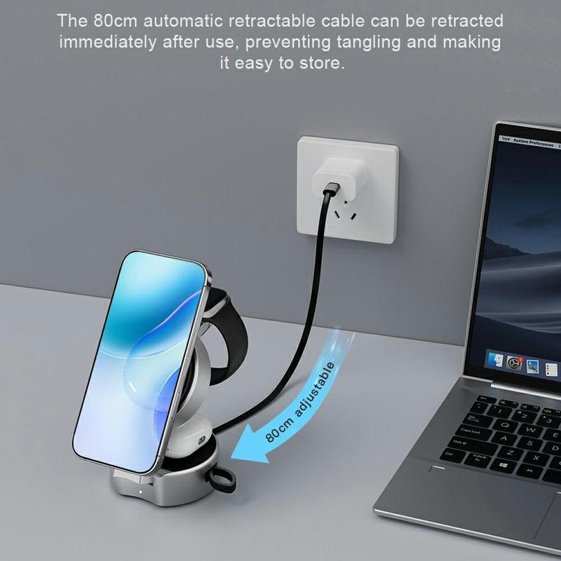 B30 3-in-1 opvouwbare magnetische draadloze oplader - Qi2-snellaadstation van 15W met intrekbare USB-C-kabel van 80 cm voor telefoon, horloge en oordopjes