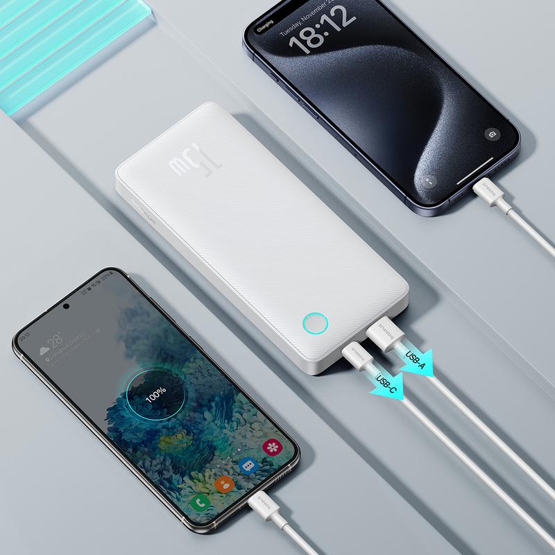 Dankzij het slanke ontwerp van 17 mm kunt u hem gemakkelijk meenemen in uw zak, handtas, rugzak of laptoptas, terwijl de 15W-oplaadcapaciteit ervoor zorgt dat uw apparaten sneller worden opgeladen dan met standaard opladers met een laag vermogen. De powerbank is uitgerust met zowel USB-C- als USB-A-poorten, waardoor u flexibele oplaadopties hebt voor verschillende kabels en apparaten. De USB-C-poort werkt ook bidirectioneel, zodat deze zowel kan worden gebruikt om de powerbank op te laden als om uw apparaten op te laden.
