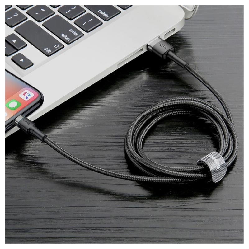 Premium USB naar Lightning-kabel uit de Baseus Cafule-serie zal uw iPhone, iPad en iPod tegelijkertijd opladen en synchroniseren. Met een stroomsterkte van 2,4 A kunt u al uw Apple-apparaten met een Lightning-poort snel en veilig opladen via de USB 2.0-interface. Het is gemaakt van hoogwaardige, duurzame materialen die een langdurig veilig gebruik garanderen.