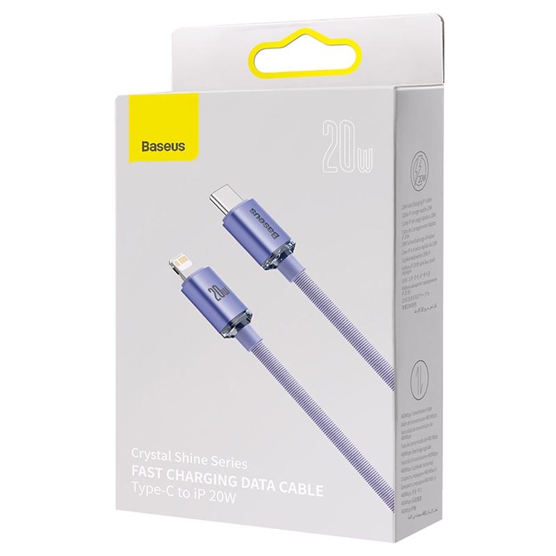 De nieuwe Crystal Shine-serie van Baseus is een hoogwaardige USB Type-C-kabel die zorgt voor het snelste opladen en synchroniseren van je Lightning-apparaat. Het ondersteunt Power Delivery met een output van 20 W die uw iPhone-smartphone in slechts 30 minuten voor 0 tot 60% kan opladen. De intelligente stroom- en temperatuurregelende chip is verpakt in de duurzame behuizing van aluminiumlegering, terwijl vijf strengen supergeleidende koperdraden zijn gecoat met een knoopvrije, met stof gevlochten mantel, waardoor deze kabel is gebouwd om lang mee te gaan.