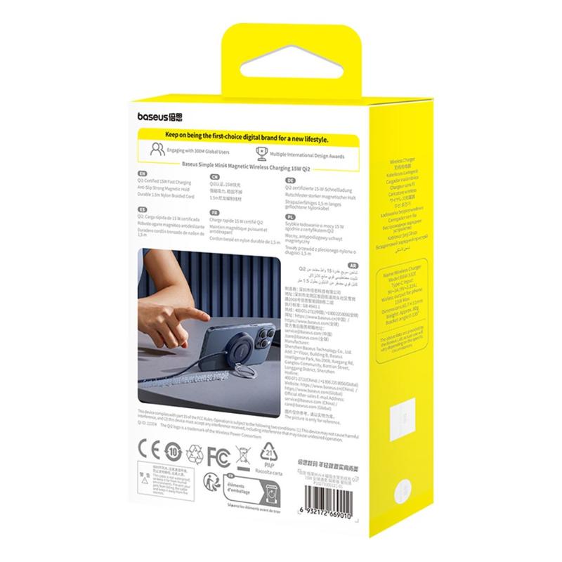 • Baseus Eenvoudige Mini4 15W magnetische Qi2 draadloze oplader met standaard