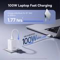 - 100W USB-C Power Delivery laadt de meeste 14 inch laptops op van nul tot 50 procent in ongeveer 30 minuten