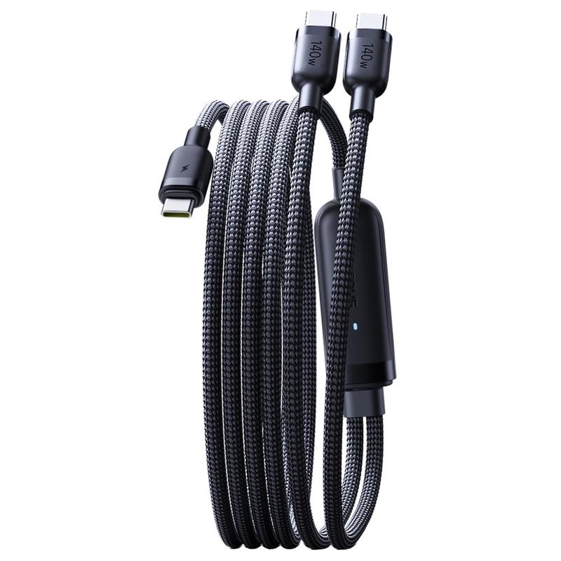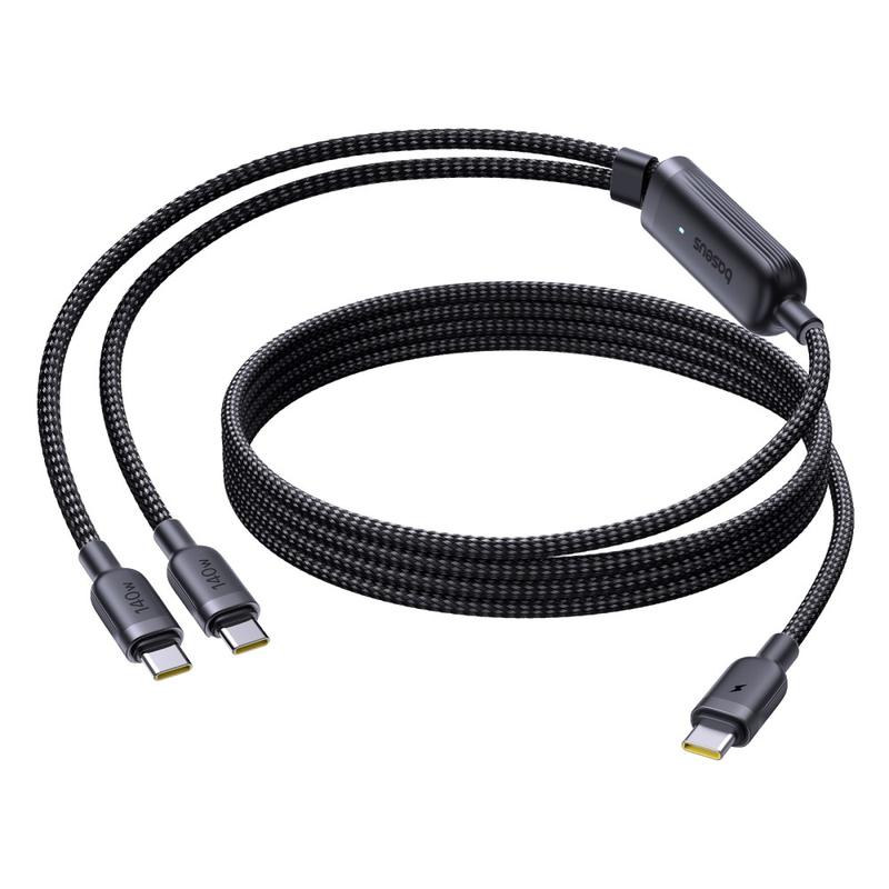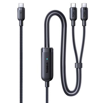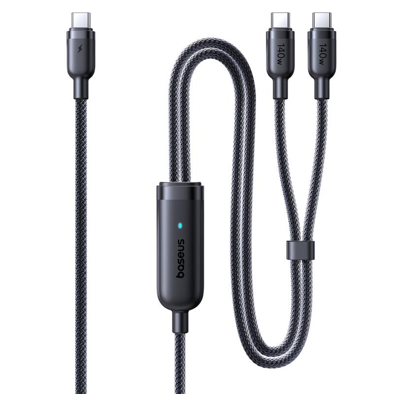 Baseus Flash 4 2-in-1 USB-C naar dubbele USB-C snellaadkabel 1,5 m - PD 3.1 140 W oplaadkabel voor meerdere apparaten met kabelhouder