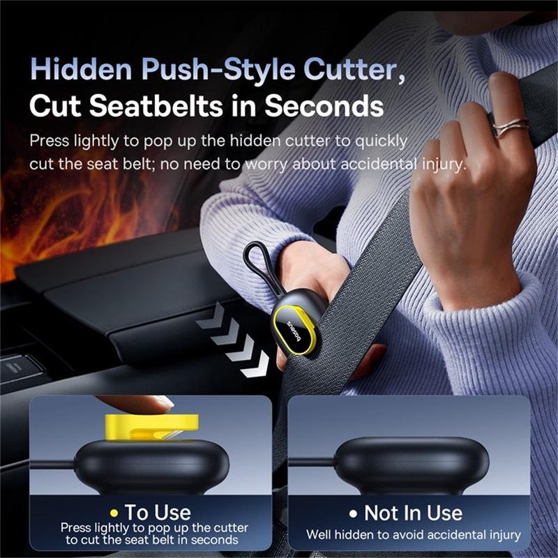 - Geïntegreerde veiligheidsgordelsnijder: Met een verborgen, vlijmscherp mes dat moeiteloos door veiligheidsgordels snijdt, zodat je jezelf of je passagiers snel kunt bevrijden als de gordels vastlopen.