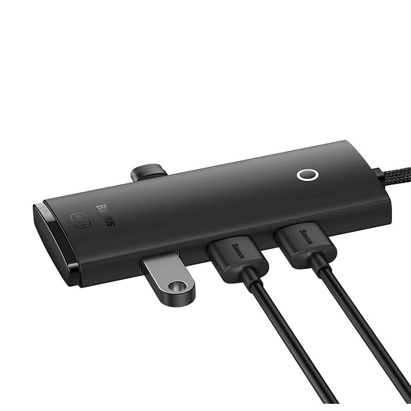 Breid je mogelijkheden uit en haal de 4 in 1 Baseus Lite Series hub in huis. Dit product is uitgerust met 4 USB 3.0-poorten, zodat je bestanden kunt overzetten met een snelheid tot 5 GB/s. Dankzij de plug&play-bediening kun je de hub gebruiken zonder extra software te installeren, en dankzij de brede compatibiliteit werkt het product ongeacht het systeem waarop je op dat moment werkt.