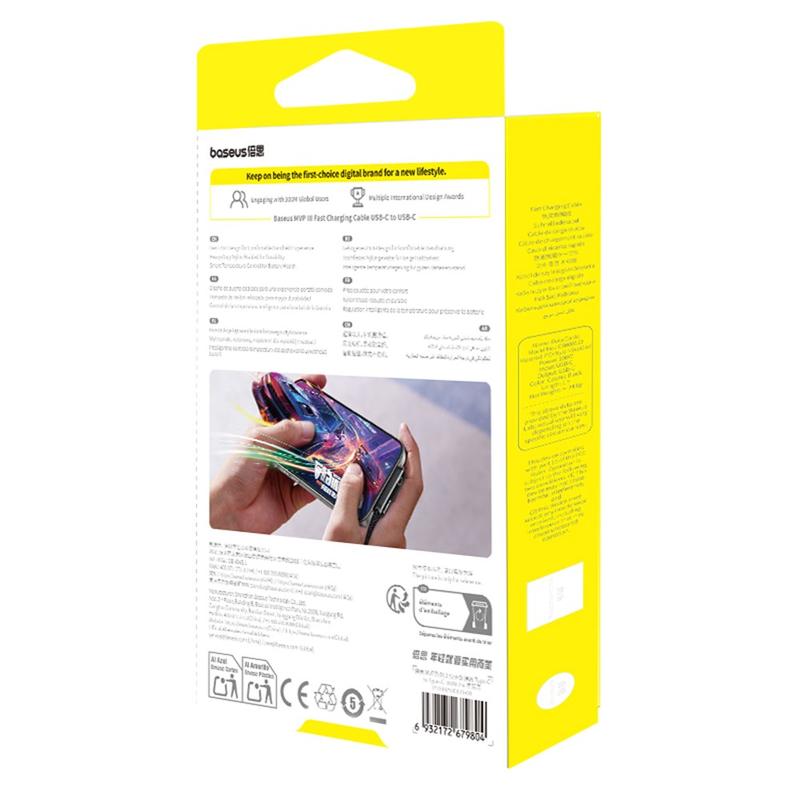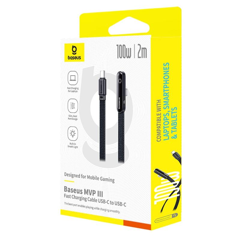 Baseus MVP 3 snel opladen USB-C naar USB-C kabel met gebogen poort - 100W, 480Mbps