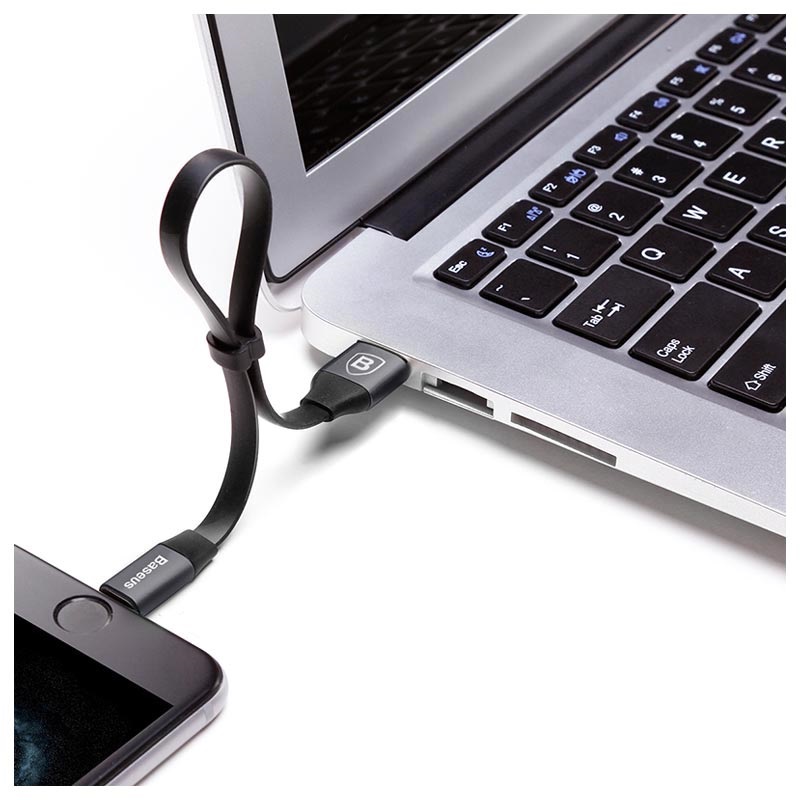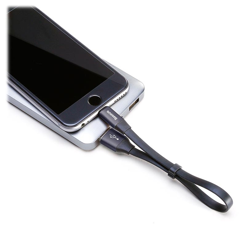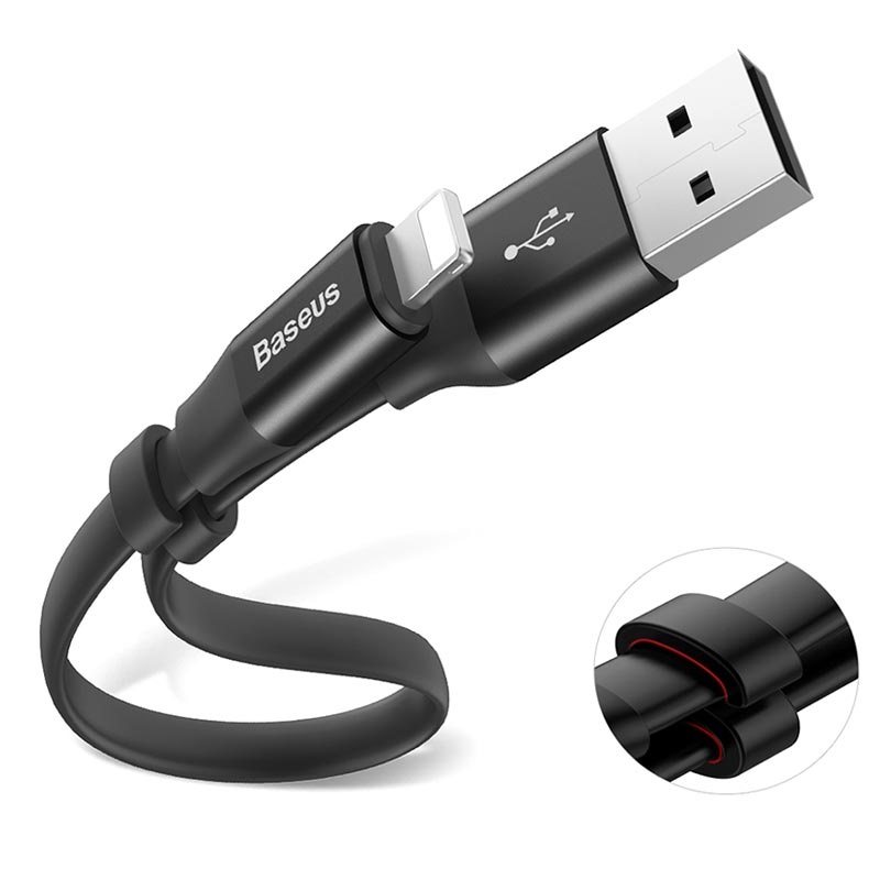 Houd de Baseus Nible Lightning-kabel in uw zak voor gemakkelijk opladen en gegevensoverdracht onderweg.