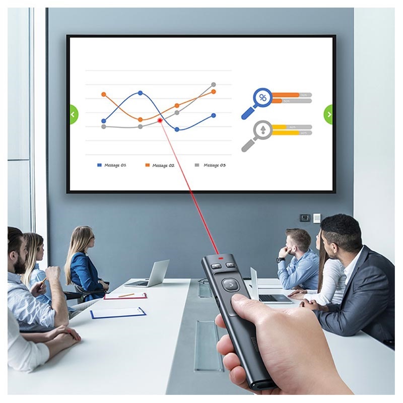 De Baseus Orange Dot draadloze presenter heeft een ingebouwde laserpointer en knoppen, zodat u uw presentatie gemakkelijk kunt bedienen. Ontworpen met een bereik van 100 m, dus het is perfect voor grote zalen. De Baseus Orange Dot Wireless presenter is een uitstekende keuze voor docenten, professoren en presentatoren.