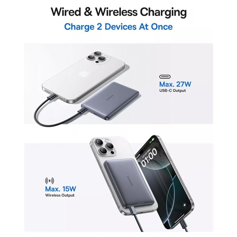 De Baseus PicoGo AM41 combineert modern draadloos gemak met krachtig bedraad opladen in één compact apparaat. Qi2 magnetische uitlijning houdt uw telefoon stevig op zijn plaats, terwijl 27W USB-C snelladen veeleisende apparaten snel oplaadt. Het slanke profiel, de duidelijke LED-indicator en de geavanceerde veiligheidsfuncties maken het een betrouwbare stroomoplossing voor dagelijks gebruik.