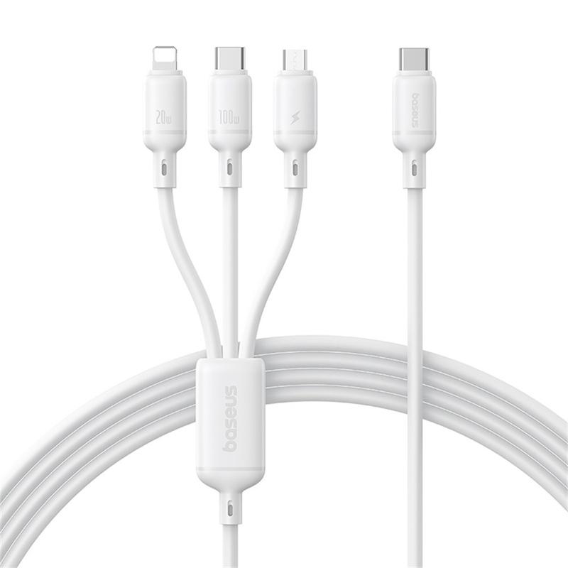 Baseus Silky 3-in-1 USB-C naar Lightning, USB-C, MicroUSB Snellaadkabel - 100W/1,5m